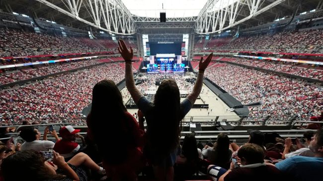 Tens of thousands of people are worshipping Jesus Christ right now in State Farm Stadium at Charlie Kirk’s memorial.