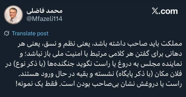 محمد فاضلی استاد دانشگاه: مملکت باید صاحب داشته باشد!