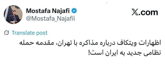 کارشناس سیاسی نزدیک به محسن رضایی: اظهارات ویتکاف درباره مذاکره با تهران، مقدمه حمله نظامی جدید به ایران است!