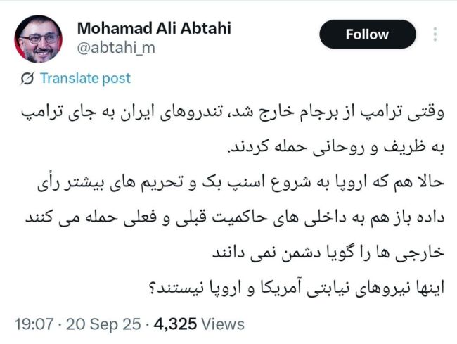 ابطحی در واکنش به انتقادات اخیر به ظریف در مورد اسنپ بک در ایکس نوشت:
