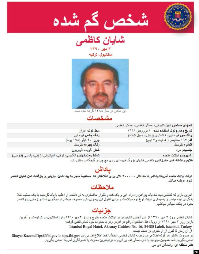 پاداش ۲۰۰ هزار دلاری دولت آمریکا برای دریافت اطلاعاتی درباره شایان کاظمی