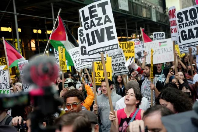گروهی از مردم روز جمعه ۲۶ سپتامبر ۲۰۲۵ در میدان «داگ هامرشولد» نیویورک در تظاهراتی در حمایت از فلسطین شرکت کردنددیدار ترامپ و نتانیاهو در روز دوشنبهرئیسجمهور آمریکا گفت «گفتوگوهای الهامبخش و سازندهای» با کشورهای منطقه در جریان است و «مذاکرات فشرده» برای پایان دادن به جنگ ادامه دارد. سخنان او در آستانه دیداری با نتانیاهو در روز دوشنبه مطرح میشود که انتظار میرود با اعلامیهای مهم همراه باشد.
