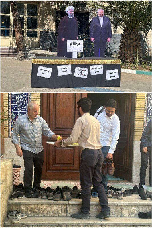 بسیج دانشگاه امیرکبیر امروز با ساخت ماکت تابوت برجام و روحانی و ظریف برای برجام ختم گرفتند و گلابی توزیع کردند!