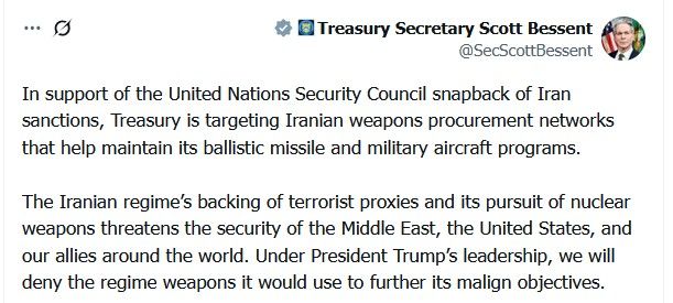 مارکو روبیو، وزیر خارجه آمریکا روز چهارشنبه همچنین از تحریم ۴۴ فرد و شرکت مرتبط با برنامه‌های هسته‌ای، موشکی و نظامی ایران در چارچوب بازگشت تحریم‌های سازمان ملل در پی فعال‌سازی مکانیسم ماشه خبر داد.بریتانیا تحریم‌های ۱۲۱ فرد و نهاد ایرانی بازگرداند