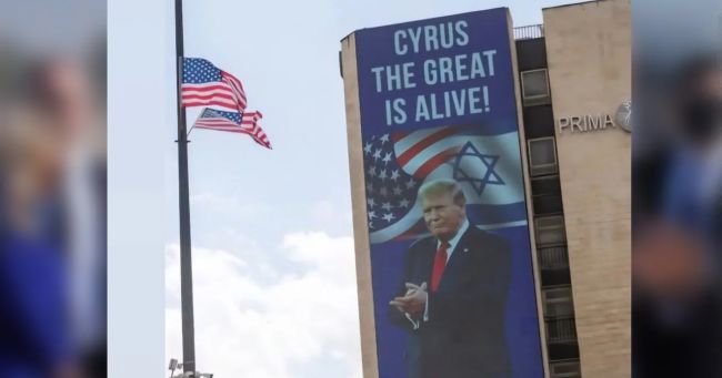 تصاویر او در شهرهای مختلف اسراییل از جمله تلآویو نصب شده که ترامپ را در برابر پرچمهای آمریکا و اسراییل نشان میدهد و روی این تصاویر نوشته شده است: «کوروش کبیر زنده است».