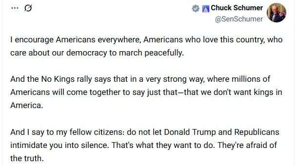 وقتی میگیم این چپها مخ تو کله اشون نیست همینه. در تاریخ امریکا پادشاه نداشتن، ولی حالا که فری فری پلستاین تموم شده دارن مخالفت میکنن با «پادشاهی» که هرگز نداشتن. هرکاری هم که ترامپ داره میکنه (داستان گارد ملی و جرم و جنایت) بر اساس اختیارات رییس جمهور طبق قانون اساسی خودشونه 😀 گاو عزیز پیششون انیشتینه
