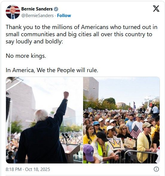 لیا گرینبرگ، بنیانگذار جنبش «تفکیکناپذیر» (Indivisible)، یکی از برگزارکنندگان تظاهرات روز شنبه گفت: «هیچ چیزی آمریکاییتر از آن نیست که بگوییم ما پادشاه نداریم و از حق خود برای اعتراض مسالمتآمیز استفاده کنیم.»