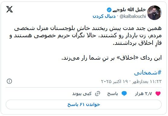 این موضع کاربران مخالف جمهوری اسلامی را راضی نکرد و در برابر آن، به این موضوع اشاره کردند که جمهوری اسلامی سالهاست به مواردی همچون عکس پروفایل افراد در رسانههای اجتماعی هم ایراد گرفته و حتی برخی از شهروندان برای چنین مواردی کار خود را از دست دادهاند، بنا بر این، استدلالی شبیه به حفظ حریم خصوصی خانواده شمخانی برای آنها قابل قبول نیست.