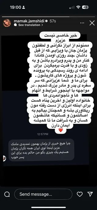 مامک جمشیدی: برادرم آمده کنار خانواده باشد، بهزودی با قدرت برمیگردد