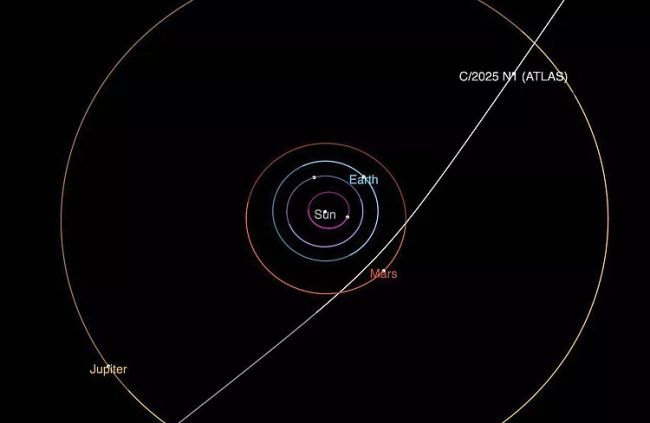 این نمودار که توسط ناسا/JPL-کلتک ارائه شده، مسیر دنبالهدار میانستارهای 3I/ATLAS را هنگام عبورش از منظومه شمسی نشان میدهد.در همین حال، رنگ آن بهطور چشمگیری تغییر کرد؛ از تهرنگی متمایل به قرمز به آبی پررنگ؛ رفتاری نامعمول برای دنبالهدارها که معمولاً با پراکندگی نور خورشید در غبار پیرامونشان سرختر به نظر میرسند.اخترشناسان همچنین در روزهای پیش از حضیض، روشنتر شدن ناگهانی آن را ثبت کردند؛ نشانهای از اینکه حجم عظیمی از ماده در حال بیرونریزی بوده است؛ احتمالاً بهسبب بخار شدن یخ سطحی زیر گرمای شدید خورشید.