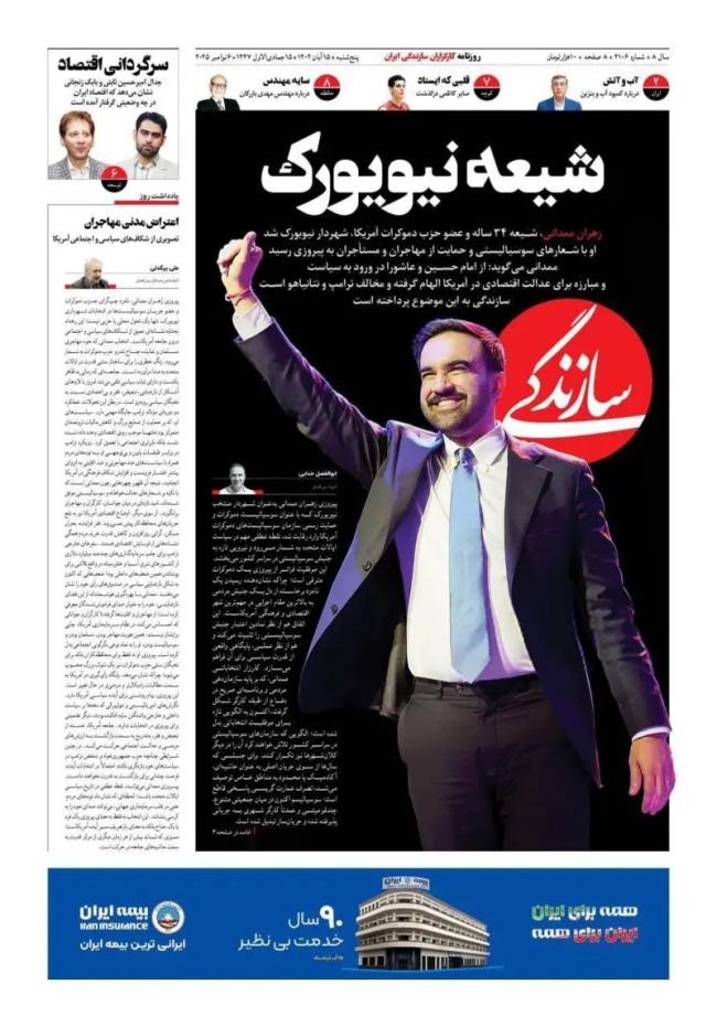 روزنامه جمهوری اسلامی هم در سرمقاله روز شنبه ۷ آبان خود با اشاره به مواضع ضدترامپ و حمایت آقای ممدانی از فلسطینیها، پیروزی او را «نشانهای از تغییر فضای سیاسی آمریکا» دانست، اما همزمان نوشت که در قضاوت درباره پیامدهای این پیروزی نباید عجله کرد و باید منتظر نتایج عملی عملکرد او ماند. این روزنامه در مورد مذهب زهران ممدانی بدون اینکه نتیجهگیری خاصی کند نوشت: «شیعیان خوجه، که ممدانی از آنهاست، دارای سبک زندگی آرام، محتاطانه و محافظهکارانهای هستند.» آقای ممدانی هرچند مسلمان شیعه است و میگوید از امام حسین و عاشورا در ورود به سیاست و مبارزه برای عدالت اقتصادی در آمریکا الهام گرفته ولی همزمان حامی سرسخت حقوق اقلیتهای جنسی و جنسیتی است و مادر و همسرش هم به حجاب اعتقاد ندارند.