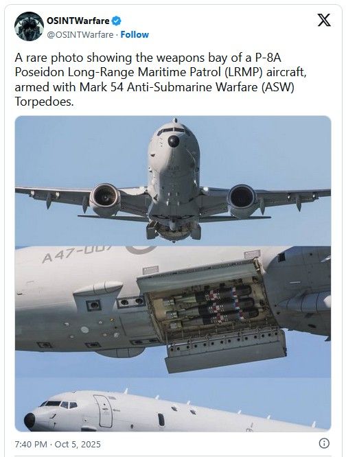 پوسایدون قادر است بیش از ۷ هزار کیلومتر پرواز کند و پنج اژدر سبک «امکا-۵۴» به وزن ۳۰۰ کیلوگرم و همچنین چهار موشک ضدکشتی هارپون حمل کند.