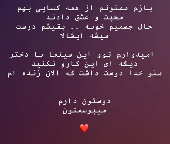 چرا اینها قبل شکایت استوری بازی میکنند؟ باج گیری زنان در ایران داره به یک رویه خطرناک تبدیل میشه در حالیکه اگر اتفاقی افتاده باید شکایت ثبت بشه و پرونده به دادگاه و مراحل کار جلو بره ولی اینکه یکی میاد استوری میذاره و یک ادعایی میکنه یکم داره لوث میشه و شرایط بدی را بوجود آورده. همه جامعه باید بدانند در روال طبیعی زندگی انسانی ، مردان همیشه پیشنهاد رابطه داده اند و خواهند داد و پیشنهاد دادن به خودی خود جرم نیست مگر اینکه به زور و تهدید و گروکشی و سو استفاده از جایگاه و قدرت خودشان متوصل شوند. پیشنهاد دادن مردان به زنان یکی از سالم ترین روالهای زندگی بشر هستش و به خودی خود جرم نیست ولی زن این حق را دارد که آزادانه بله یا خیر بگوید و مردان باید بفهمند که حق مجبور کردن و استفاده از قدرت و زور را برای راضی کردن زنی را ندارند و این جرم و تعرض هستش ولی پیشنهاد دادن و اصرار بر پیشنهاد و تلاش سالم و با احترام برای رسیدن به زن یک کار کاملا قانونی باید باشه.
