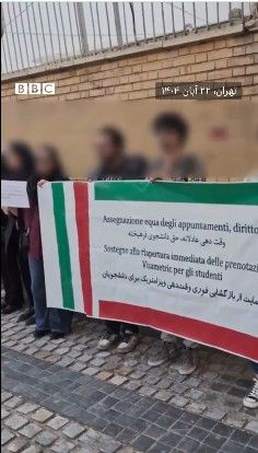 بی بی سی: یک هفته پس از صدور حکم تاریخی دادگاهی در تورین ایتالیا که وزارت خارجه و سفارت این کشور در تهران را ملزم به  تعیین وقت و بررسی درخواست‌های ویزای دانشجویان ایرانی کرد، گزارش‌های دریافتی بی‌بی‌سی فارسی حاکی از آن است که مشکلات هنوز پابرجاست و دانشجویان معترض دیروز، پنجشنبه ۲۲ آبان (۱۳ نوامبر)، بار دیگر مقابل سفارت ایتالیا در تهران تجمع کردند.