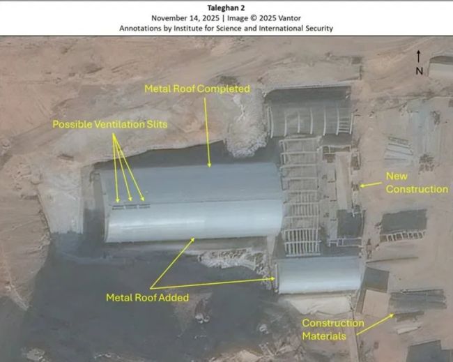 بر اساس تصاویر ماهوارهای از سپتامبر تا نوامبر ۲۰۲۵، سایت اکنون در مراحل پیشرفته ساخت قرار گرفته است. گزارش میگوید طراحان بنا با ایجاد شیبهای عمیق در دامنه کوه، سازه فلزی اصلی را در میان یک چارچوب تقویتشده قرار دادهاند و دو طاق فلزی مستحکم نیز به عنوان ورودی یا تله انفجاری در دو سمت آن ساخته شده است. سه شکاف مستطیلی روی سقف فلزی ساختمان مشاهده میشود که احتمالا نقش تهویه یا دسترسی به محفظه را دارند.