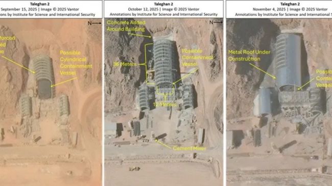 ایران اینترنشنال: تصاویر ماهوارهای نشان میدهد ایران در مجموعه «طالقان ۲» که از سایتهای سابق توسعه سلاح هستهای در چارچوب «برنامه آماد» است، یک سازه استوانهای شبیه محفظه آزمایش مواد منفجره نصب کرده است. ابعاد این سازه و سابقه این مرکز، پرسشهای تازهای درباره اهداف احتمالی آن طرح کرده است.موسسه علوم و امنیت بینالملل واقع واشینگتن در گزارشی اعلام کرد بر اساس تصاویر ماهوارهای که از شهریور تا آبان ۱۴۰۴ از سایت «طالقان ۲» تهیه شده، این سازه حدود ۳۶ متر طول و ۱۲ متر قطر دارد و درون سازهای فلزی با طول تقریبی ۴۰ متر و عرض ۱۷ متر قرار گرفته است.