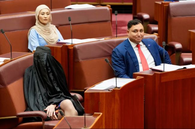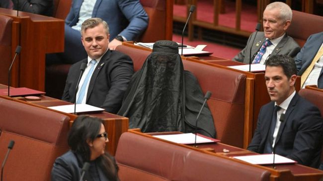 نماینده راست افراطی استرالیا با برقع در مجلس سنای این کشور ظاهر شد