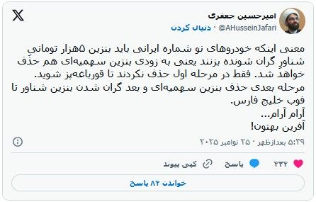 در شبکههای اجتماعی همچنین با اشاره به شرایط سیاسی پس از جنگ ۱۲ روزه میان ایران و اسرائیل، نارضایتیهای گسترده مردمی و فشار مشکلات معیشتی بر مردم، نسبت به افزایش نرخ تورم با افزایش قیمت بنزین هشدار داده شده است.