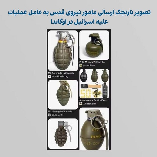 یک عضو ایرانی شبکه نیروی قدس فعال در برنامه حمله به سفارخانههای اسرائیل در اوگاندا و سنگال، تصویری از یک نارنجک را در واتساپ برای عامل اوگاندایی فرستاد و از او خواست چنین سلاحی را خریداری کند.