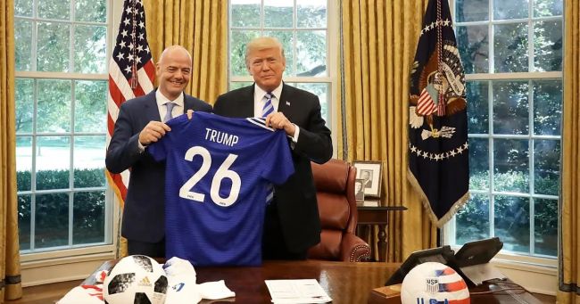 در مطلبی که فارس به صورت گزیدهای از گزارش گاردین منتشر کرده، به صورت مداوم به ملاقاتهای اینفانتینو با دونالد ترامپ رییس جمهوری آمریکا اشاره شده است. این در حالی است که گاردین در گزارش خود، اینفانتینو را به شکلی بیسابقه و بیپروا، مدیری عاشق و شیفته ملاقات با شخصیتهای سیاسی در سراسر جهان معرفی کرده است.