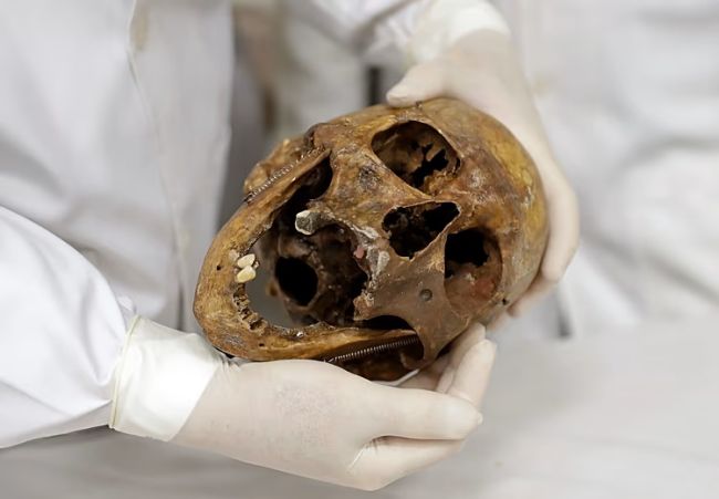 پزشک قانونی جمجمه یوزف منگله را در تاریخ ۷ دسامبر ۲۰۱۶، در دانشکده پزشکی دانشگاه سائوپائولو نشان میدهد.آقای منگله در سال ۱۹۷۹ میلادی در حالی که در دریای ساحل شهر برتیوگا شنا میکرد، دچار سکته شد و مرد.او تحت نام جعلی ولفگانگ گرهارد دفن شد، اما وجود چندین سرنخ منجر به بیرون آوردن جسد و شناسایی قطعی بقایای او توسط مقامات برزیلی در سال ۱۹۸۵ میلادی شد.