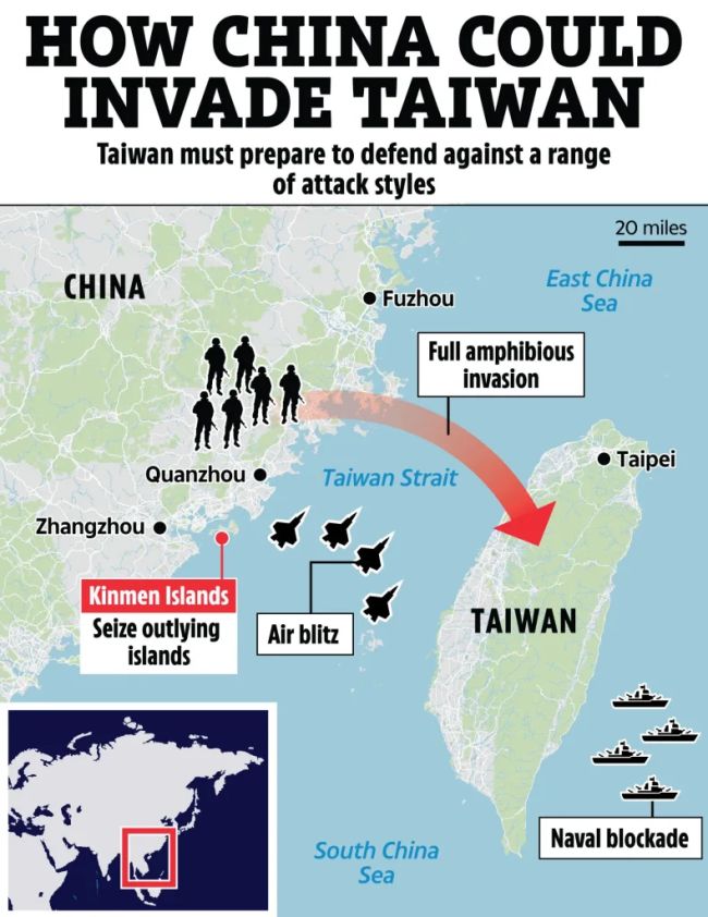 در تازهترین قسمت برنامه «طرحهای جنگی فاش شده» در نشریه The Sun، فیلیپ اینگرام، کارشناس حوزه اطلاعات نظامی، تنشهای شدید موجود را بررسی کرده و توضیح میدهد که شی جینپینگ چگونه میتواند به تایوان حمله کند.