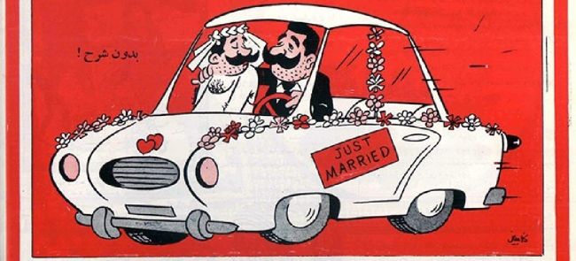 علاوه بر این، مجله توفیق، مطالب و کاریکاتورهای طنز دیگری هم در این باره منتشر کرد. در یکی از این کارکاتورها، این دو مرد به همدیگر می گویند: شیر یا خط می اندازیم بیینیم عروس کیه؟!