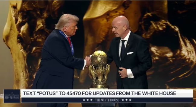 رییس فیفا هم با اشاره به تلاشها و اقدامات رئیس جمهوری آمریکا برای برقراری صلح در خاورمیانه و نقاط دیگر جهان او را یک رهبر بزرگ نامید و از رئیس جمهوری آمریکا تمجید کرد.