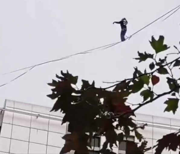 ویدیویی از تهران نشان میدهد که یک دختر جوان بدون رعایت هیچگونه استاندارد ایمنی بین دو ساختمان طناببازی میکند.