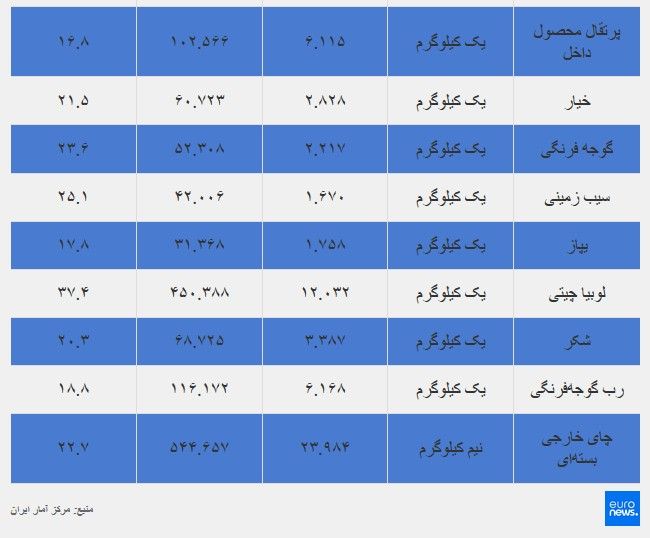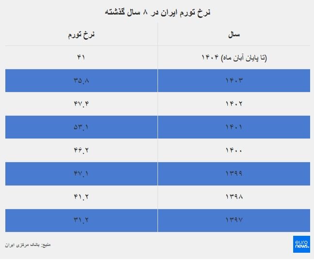 یورونیوز: صعود پی در پی قیمت اقلام خوراکی طی ماههای اخیر گذشته از آن که موجب فشار روز افزون بر سبد معیشت خانوارها و بودجه محدود ماهانه آنها شده بلکه نگرانیهای کارشناسان را در مورد پدیدار شدن شواهد وقوع اَبَرتورم در ایران برانگیخته است.دادههای رسمی منتشر شده توسط بانک مرکزی ایران نشان میدهد که اقتصاد ایران طی ۸ سال گذشته به طور متوسط با تورم سالانه ۴۳ درصدی مواجه بوده است.