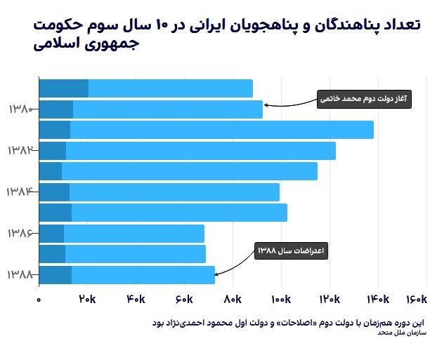 اطلاعات سازمان ملل متحد نشان میدهد پناهندگی ایرانیان ارتباط مستقیمی با تغییر دولتها در ایران نداشته است.