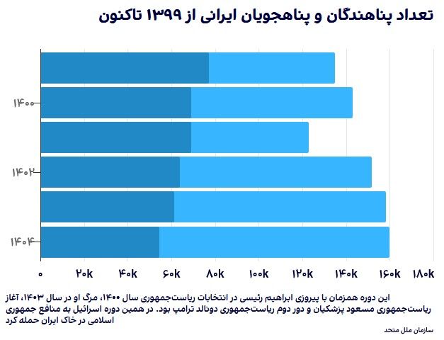 با این حال، بر اساس اطلاعات سازمان ملل متحد، از سال ۱۳۵۹ که روند پناهندگی ایرانیان آغاز شد، تاکنون پنج میلیون و ۱۸۳ هزار ایرانی، رنج پناهجویی و پناهندگی را به جان خریدهاند.