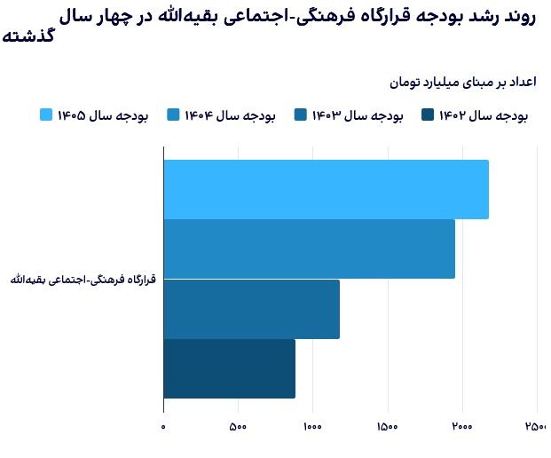 روند رشد بودجه قرارگاه فرهنگی-اجتماعی بقیهالله در چهار سال گذشته