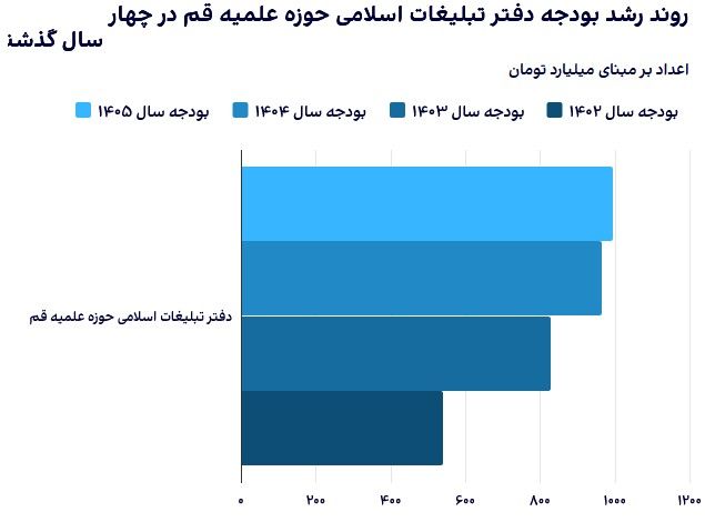 به «دفتر تبلیغات اسلامی حوزه علمیه قم» حدود هزار میلیارد تومان، «شورای عالی حوزههای علمیه» ۷۴۵۰ میلیارد تومان و «شورای برنامهریزی مدیریت حوزههای علمیه خراسان» ۹۲۹ میلیارد تومان بودجه اختصاص داده شده است.