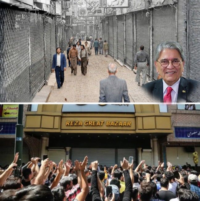 بازار که به میدان آمد، بشارت بزرگی برای میلیونها ایرانی بود که عزیزانشان بر حلقه دار بوسه زدند، گلوله خوردند یا در زندانها، جان و جهانشان سوخت و خاکستر شد. بازاریها که به میدان آمدند، شعارهایشان فقط برای یک روز نیمرنگ اقتصادی داشت و از روز دوم، با گسترش تظاهرات، پیوستن دانشجویان و ایرانبانوها به تظاهرات، شعارها بهسرعت سیاسی شد. در واقع یک روی سکه نفی حاکمیت سید علی و مجموعه باندهای قدرت (سپاه، ۱۶ نهاد اطلاعاتی و قوه قضاییه تا ریشه فاسد) شد و روی دیگر بازگشت پهلوی.