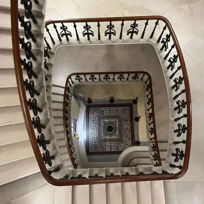 موزاییک بزرگی که دو شیر را در حال حفاظت از ستونی از طلا نشان میدهد، در مرکز تالار ورودی قرار دارد و تصویرهای خدای رومی، مرکوری، همهجا دیده میشوندشیرهای طلایی، نمادی از امنیت، در سراسر این فضا دیده میشوند. از چراغهای طراحیشده گرفته تا نردههای پله و حتی دستگیرههای در که نسخههای کوچکی از مرکوری، خدای رومی ارتباطات و امور مالی، هستند.خانم آدام توضیح میدهد: «ترکیبی از سبک مدرن و باستانی وجود دارد. این حس را به شما میدهد که هرچند این ساختمان نسبتاً جدید است، انگار همیشه اینجا بوده است.»