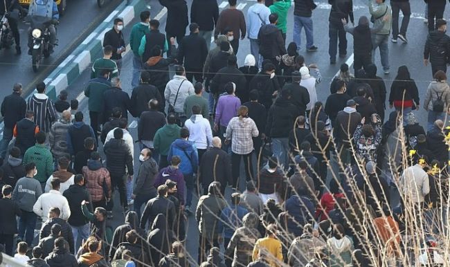معترضان علیه جمهوری اسلامی شعار میدهند و خواستار سرنگونی حکومت هستند.