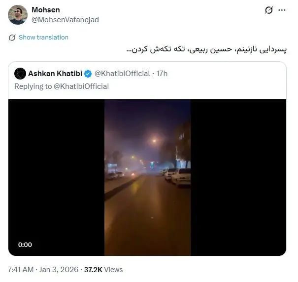 بی بی سی: فرزاد صیفیکارانجمعه ۱۲دیماه ویدیویی از یک معترض که وسط خیایانی افتاده، در حالی که قفسه سینه و دست راستش متلاشی شده، به سرعت در شبکههای اجتماعی به عنوان «معترضی که با نارنجک در قم» کشته شد، بازنشر شد.