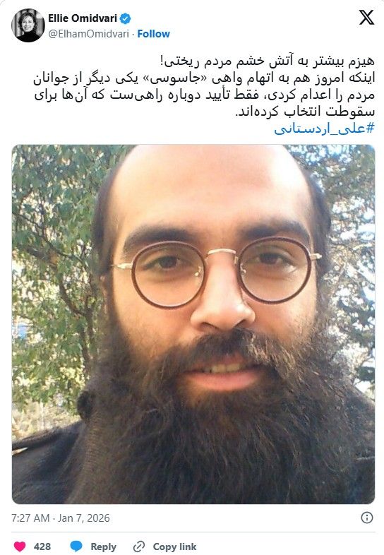 پیشتر روز شنبه ۲۹ آذرماه ۱۴۰۴ یک دانشجوی معماری به نام عقیل کشاورز به اتهام «جاسوسی برای اسرائیل» اعدام شد. قوه قضاییه مدعی شده عقیل کشاورز و خانوادهاش «گرایشات سلطنتطلبانه» داشتند.