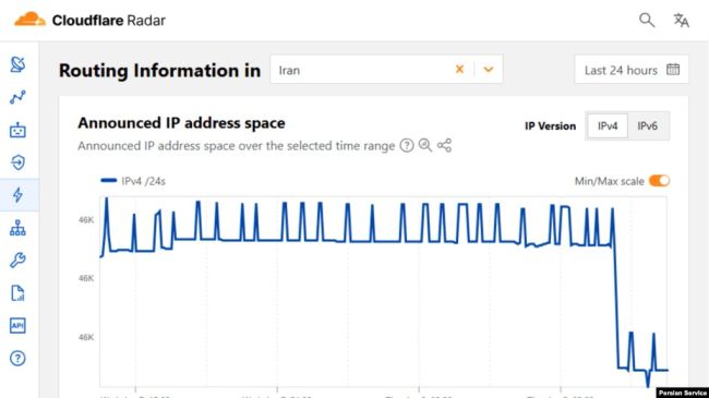 اخلال در اینترنت ایرانصدای آمریکا: در پی شدت گرفتن اعتراضات سراسری در ایران، دادههای شرکت زیرساختی کلودفلر نشان میدهد که درست پیش از ساعت ۱۲:۰۰ بهوقت استاندارد جهانی (۳ و نیم بعدازظهر به وقت ایران)، میزان فضای آدرسدهی اعلامشده آیپی وی ۴ در ایران نزدیک به ۹۸.۵ درصد کاهش یافته است. همزمان سهم ترافیک آیپی وی ۶ از حدود ۱۲ درصد به کمتر از دو درصد سقوط کرده است؛ نشانهای روشن از دخالت هدفمند در جریان اینترنت بینالمللی کشور.