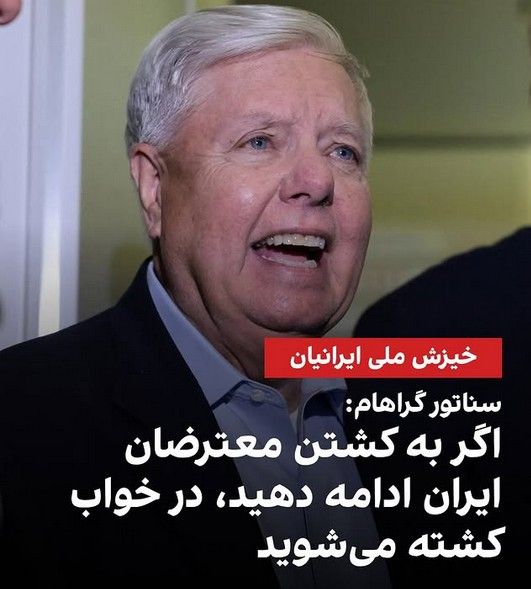 لیندسی گراهام، سناتور جمهوریخواه، خطاب به رهبران «حامی تروریسم دولتی و رژیم خشن مذهبی نازی» در ایران نوشت: «اگر به کشتن مردم خود برای حفظ کنترل بیمارگونه بر ایران ادامه دهید، وقتی بیدار میشوید که مردهاید.»