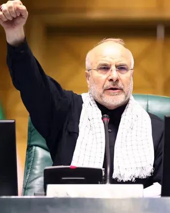 قالیباف گفت: «بیا تا با آتش مدافعان ایران چنان بسوزی که درس عبرت برای همیشه تاریخ ظالم آمریکا شود.»