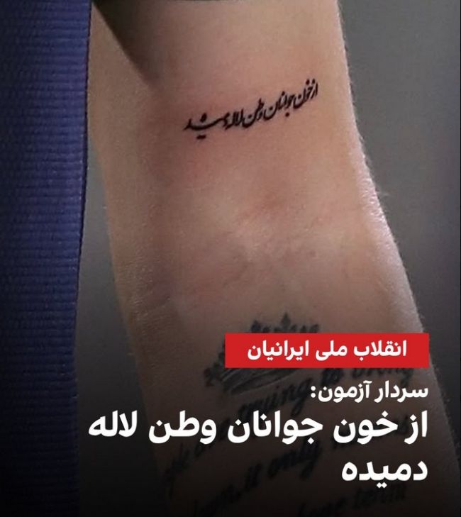 سردار آزمون، مهاجم تیم ملی فوتبال ایران با انتشار تصویری از خالکوبی روی دستش که نوشته «از خون جوانان وطن، لاله دمیده» به کشتار مردم ایران توسط نیروهای سرکوب جمهوری اسلامی واکنش نشان داد.