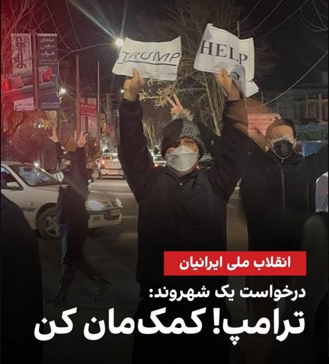 تصویر رسیده به ایراناینترنشنال نشان میدهد یک معترض در تهران دستنوشتهای را در دست گرفته و بالا برده که روی آن خطاب به دونالد ترامپ به زبان انگلیسی از او برای حمایت از معترضان در مقابل سرکوب حکومتی، کمک خواسته شده است.