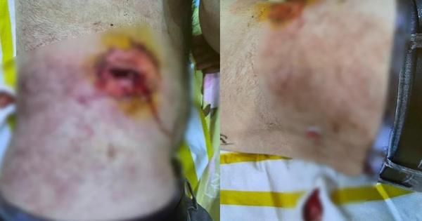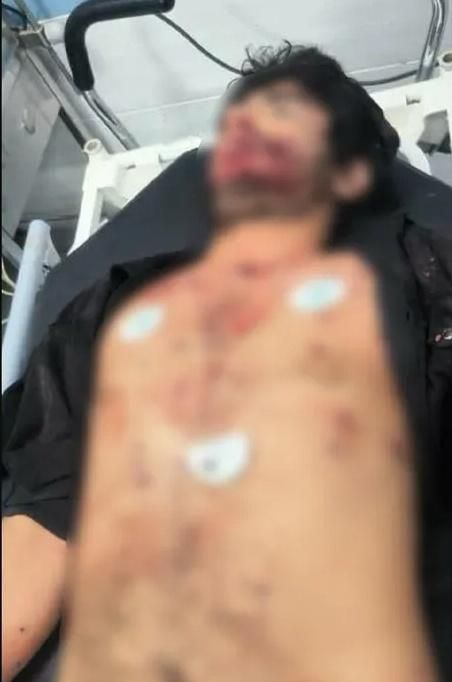 تصویر دریافتی بعدی، مرد جوانی را نشان میدهد که با چشمانی باز روی تخت بیمارستان قرار دارد. تمام قفسه سینه او پر از جای ساچمه است. در صورت او نیز جای اصابت وجود دارد.