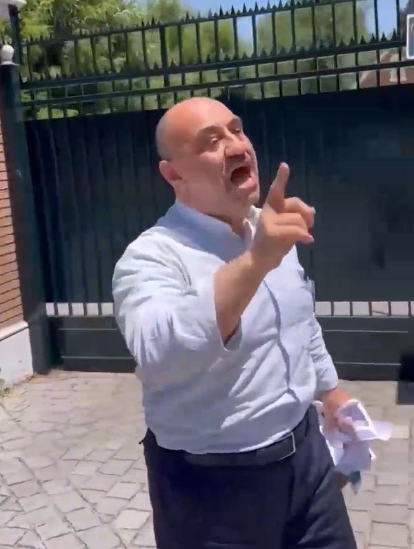 ویدیوی رسیده به ایراناینترنشنال نشان میدهد هوشنگ ابهری، سفیر جمهوری اسلامی در شیلی، تصاویر شاهزاده پهلوی را که مخالفان روی در و دیوار سفارت چسباندهاند، پاره میکند و با کسانی که تجمع کردهاند درگیر میشود. pic.twitter.com/1mp0UFdkbN