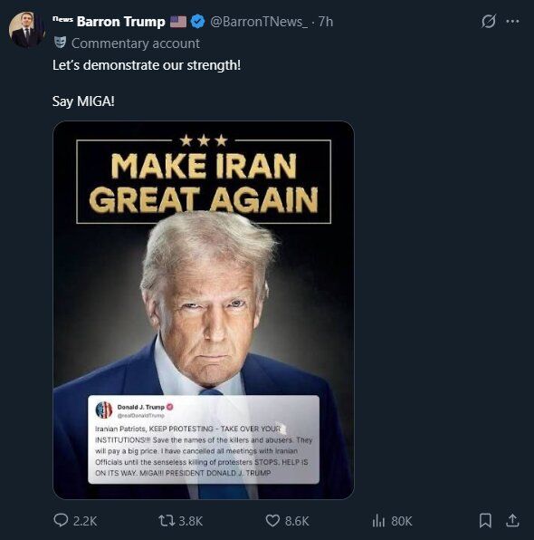 پسر ترامپ : بیایید قدرت خود را نشان دهیم! بگویید MIGA!