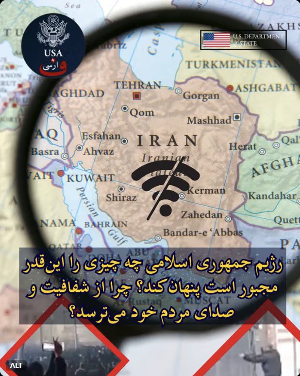 صفحه فارسی وزارت خارجه آمریکا: رژیم جمهوری اسلامی از شفافیت و صدای مردم خود میترسد