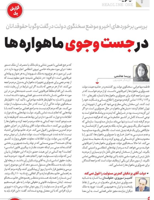 این روزنامه در مورد قطع اینترنت هم مطلبی دارد با عنوان «خلع سلاح افکار عمومی» که در آن با اشاره به برقراری اینترنت ملی، آمده است که قطع اینترنت مترادف با نابودی رسانههای مستقل است.