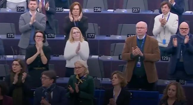 اعضا پارلمان اروپا به مدت یک دقیقه سرپا ایستادند و دست زدند.